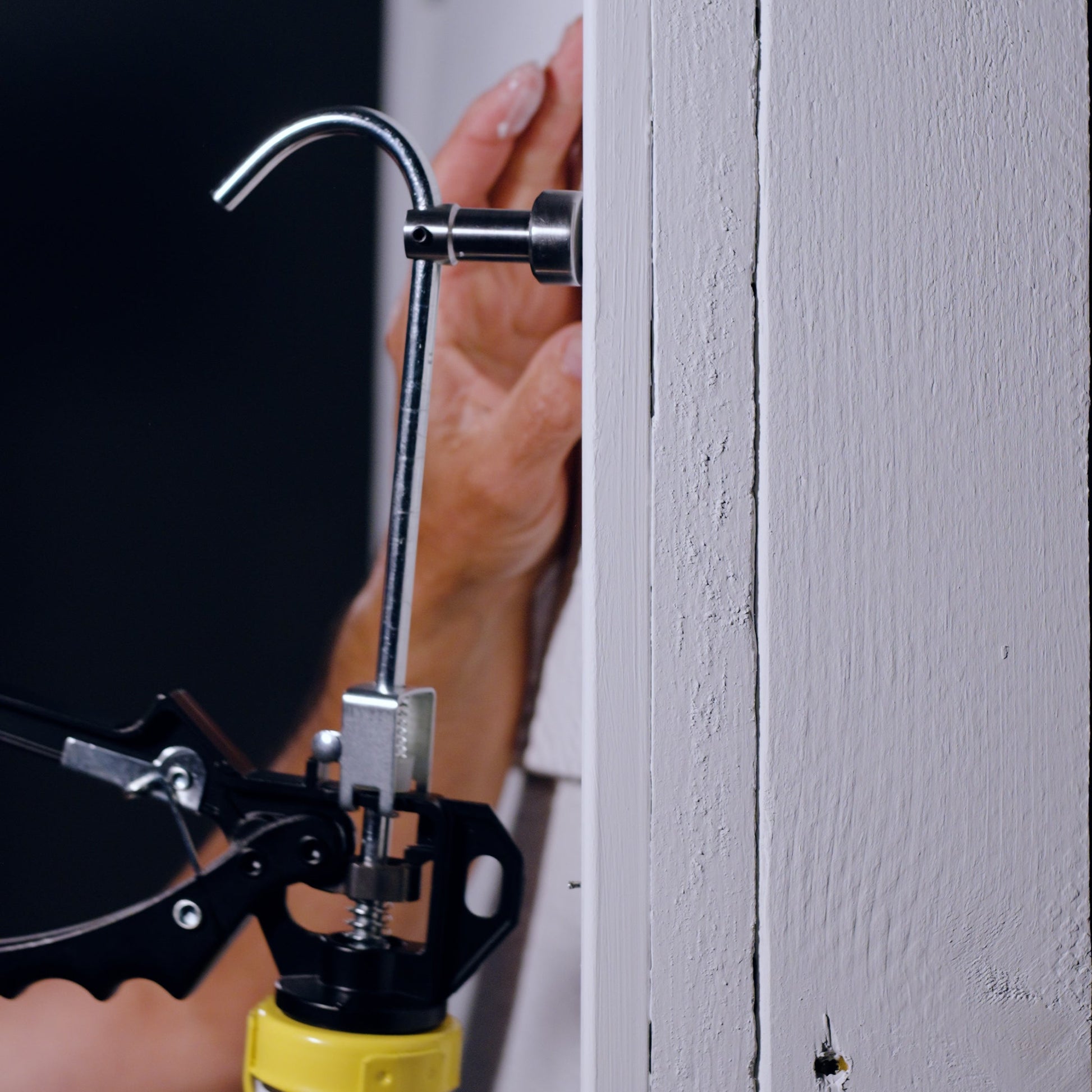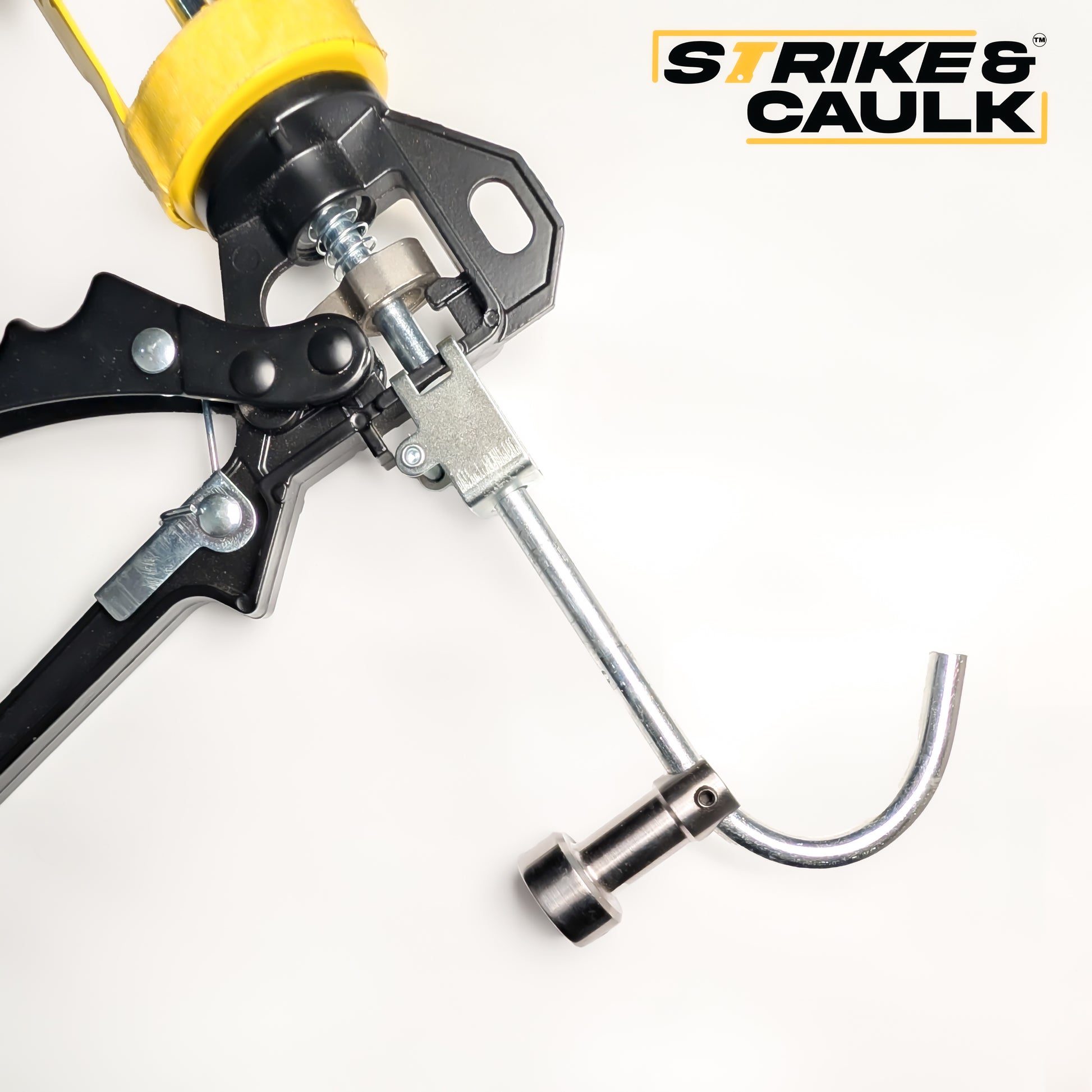 Say goodbye to the hassle of reaching for your hammer while caulking. The Strike & Caulk is a compact, high-grade steel attachment that fits securely onto most standard caulking guns—giving you a built-in hammer, right where you need it.